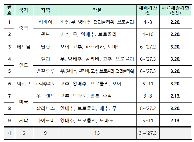 ○ 공동전시포 : 6개국 9지역 13개 작물