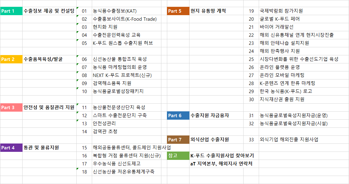 aT '2026 K-푸드 수출지원사업' 가이드북 목차