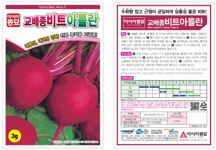 | 비트 | 아틀란 | 아시아종묘㈜ | 02-443-4303 | 내병성, 내건성 강한 전문 농가용 고급종! |