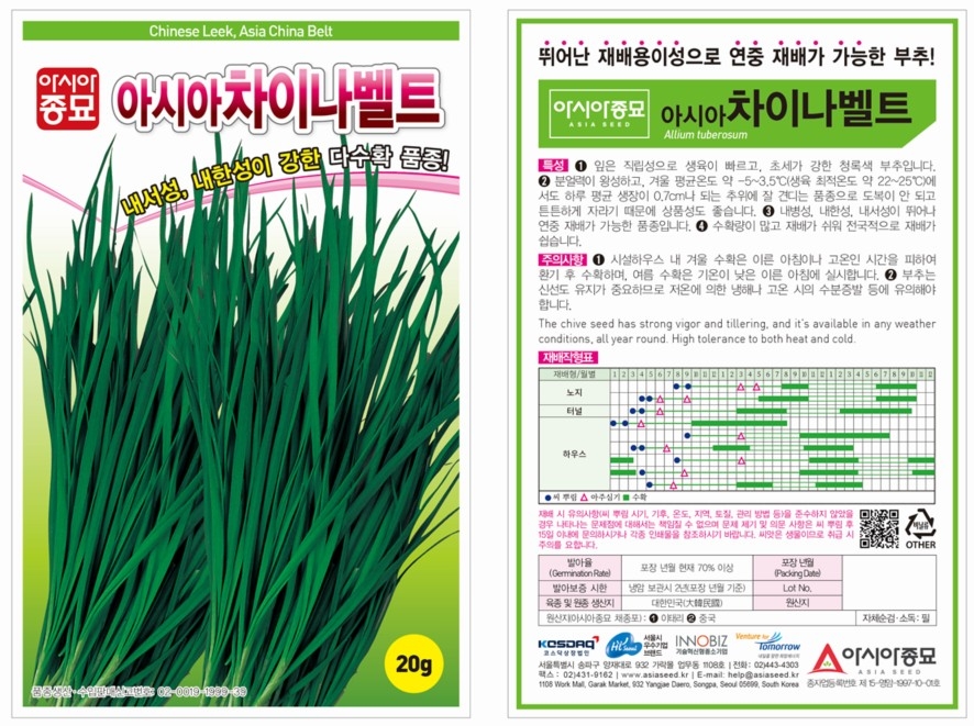 | 부추 | 아시아차이나벨트 | 아시아종묘㈜ | 02-443-4303 | 내서성, 내한성이 강한 다수확 품종! |