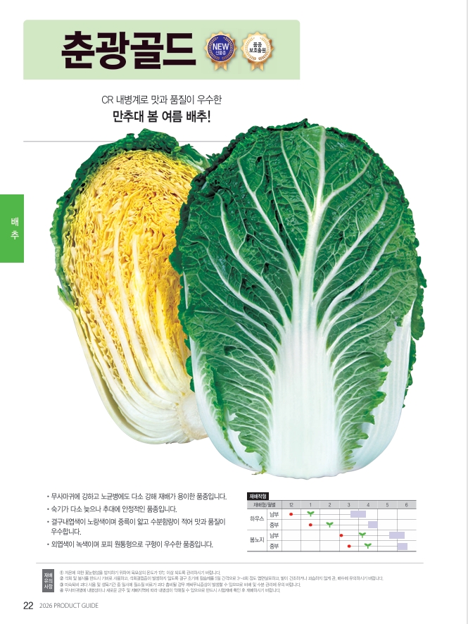 | 주요특성 | 맛과 품질이 우수하고 재배폭이 넓은 전천후 봄 배추! |
