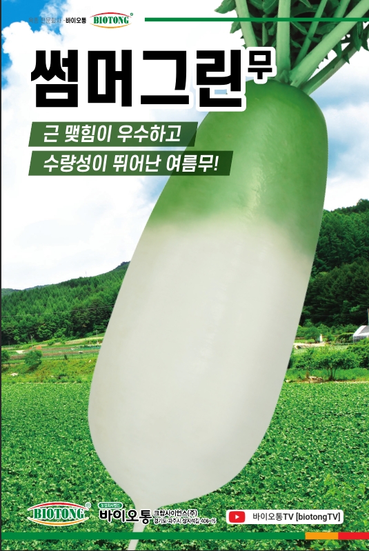 | 무 | 썸머그린 | 바이오통크랍사이언스㈜ | 031-994-4199 | 근 맺힘이 우수하고 수량성이 뛰어난 여름 무 |