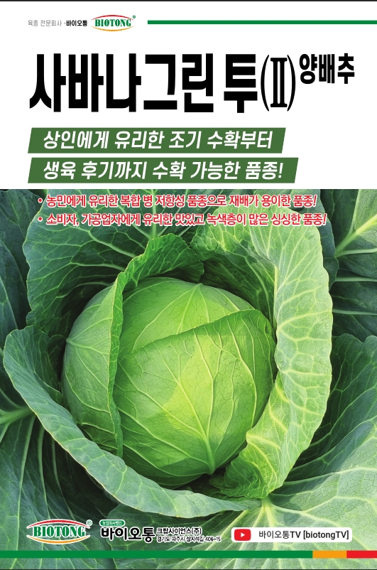 | 양배추 | 사바나그린2 | 바이오통크랍사이언스㈜ | 031-994-4199 | 조기 수확부터 생육 후기까지 수확 가능 |