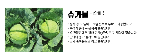 | 주요특성 | 수확기 폭이 넓은 고품질 프리미엄 양배추! |
