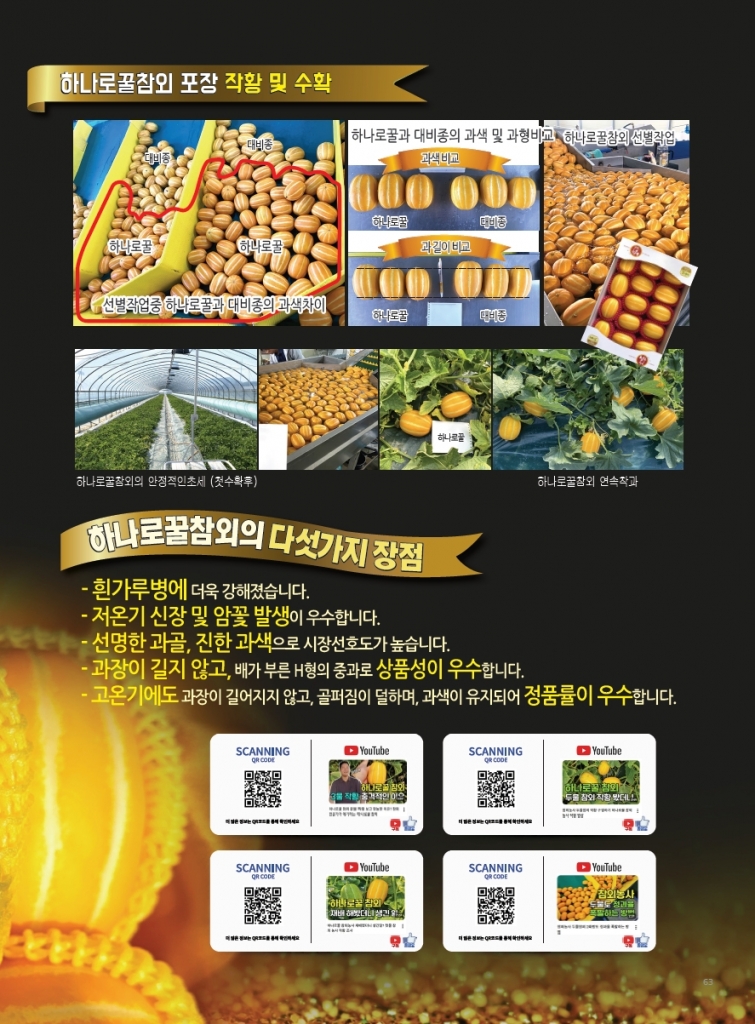 | 참외 | 토종꿀 | ㈜팜한농 | 02-3159-5882 | 재배가 쉽고, 정품 수확량이 많은 참외 |