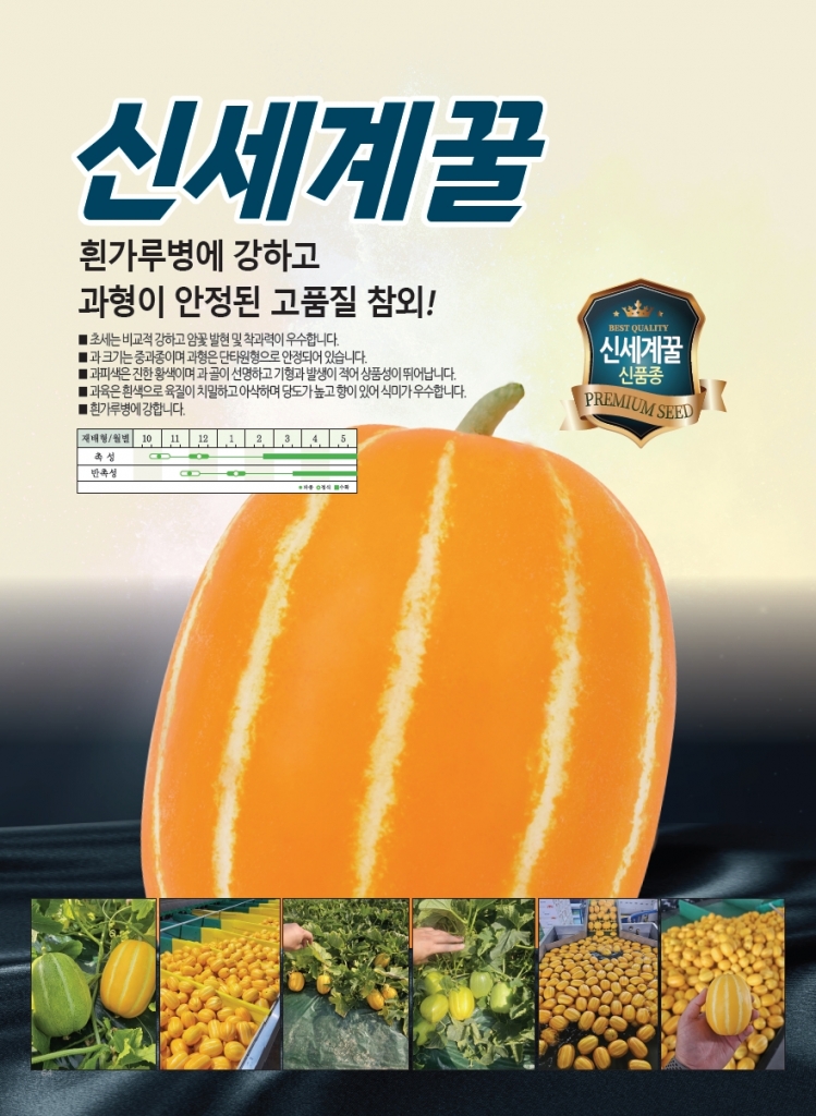 | 참외 | 신세계꿀 | ㈜NH농우바이오 | 031-218-1176 | 흰가루병에 강하고 과형이 안정된 고품질 참외! |