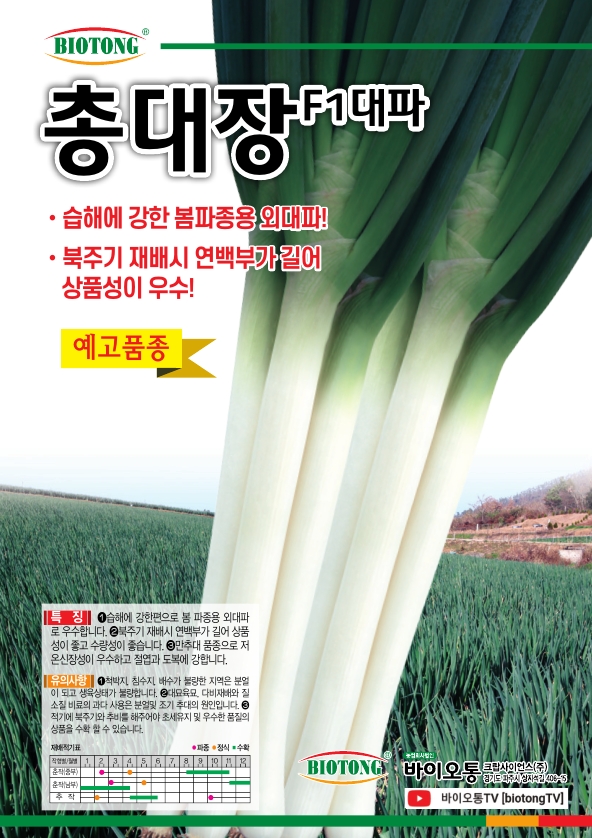 | 파 | 총대장 | 바이오통크랍사이언스㈜ | 031-994-4199 | 습해에 강한 봄파종용 외대파 |