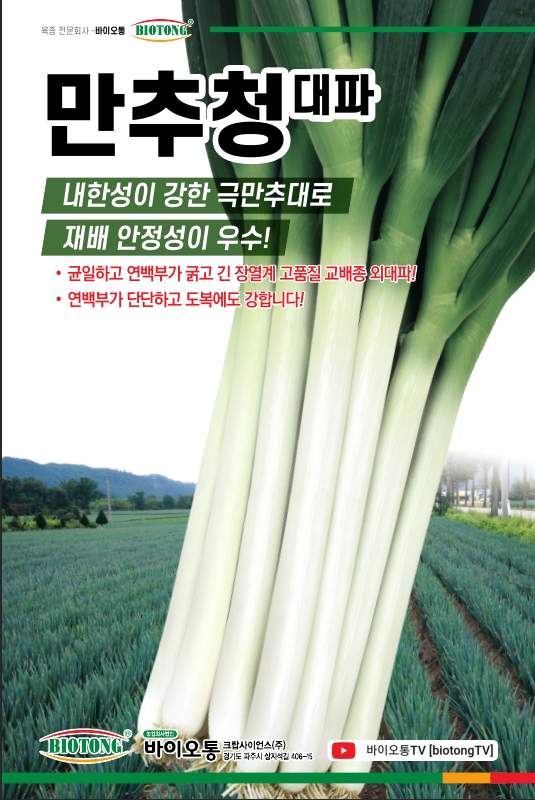 | 파 | 만추청 | 바이오통크랍사이언스㈜ | 031-994-4199 | 내한성이 강한 극만추대로 재배 안정성 우수 도복에도 강하다. |