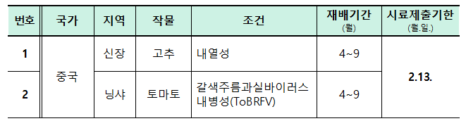 ○ 종자시료 : 품종당 300립(또는 5g) 우편 제출