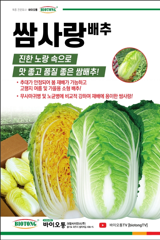| 배추 | 쌈사랑 | 바이오통크랍사이언스㈜ | 031-994-4199 | 추대가 안정된 봄, 고랭지 여름 및 가을용 쌈배추 |