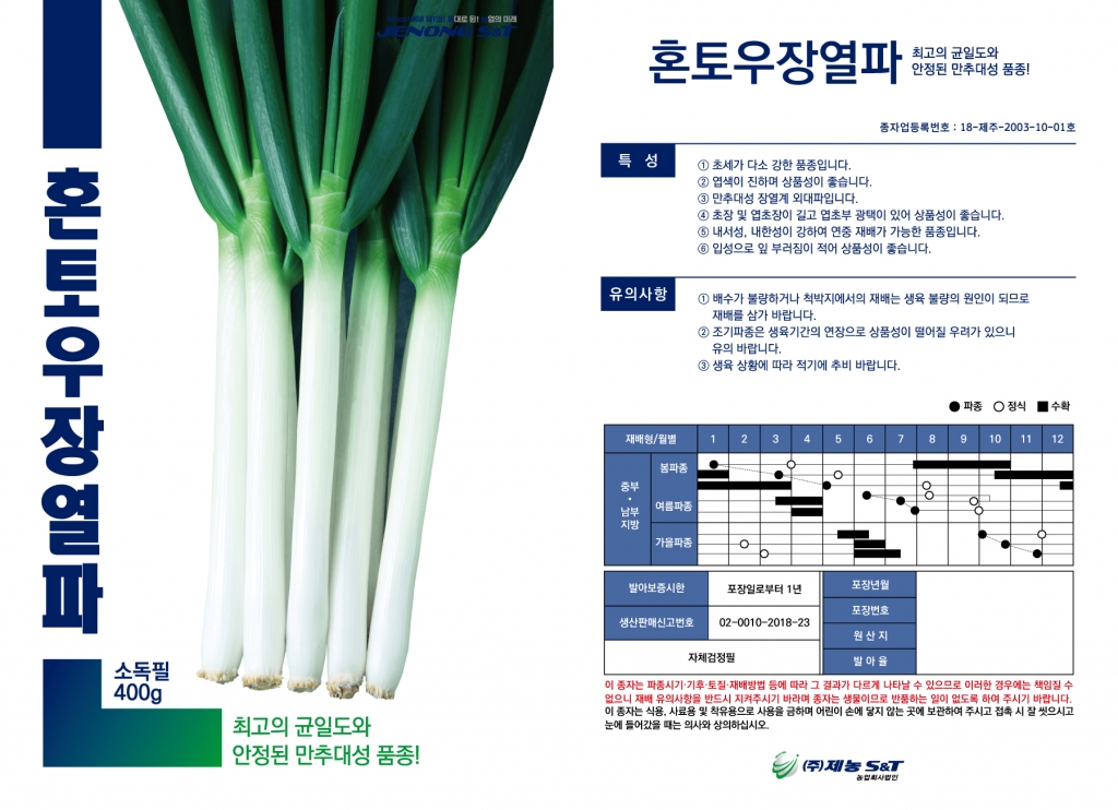 | 파 | 혼토우장열파 | ㈜제농S&T | 010-8506-0809 | 최고의 균일도와 안정된 만추대성 품종! |