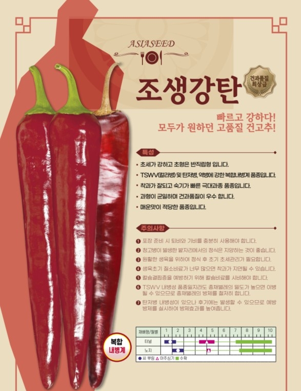 고추 조생강탄 아시아종묘㈜ 02-443-4303 빠르고 강하다! 모두가 원하던 고품질 건고추!