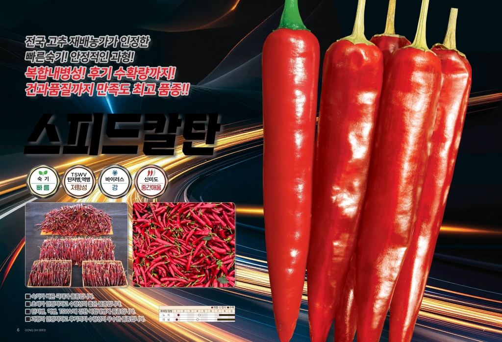 고추 스피드칼탄 ㈜경농 031-8010-8011 숙기 빠르고 수확량 우수한 TSWV·탄저병·역병 복합내병계 극대과