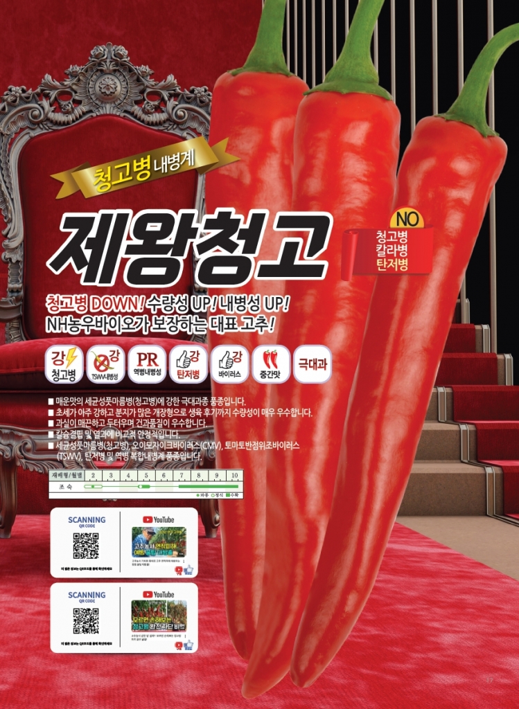 고추 제왕청고 ㈜NH농우바이오 031-218-1176 청고병 DOWN! 수량성 UP! 내병성 UP! 농우바이오가 보장하는 대표 고추!