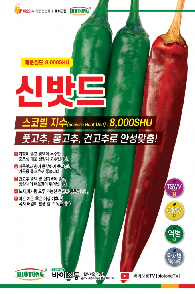 고추 신박한골드 고농㈜ 010-8270-9222 역병·바이러스에 강한 다수확 신미계 고추