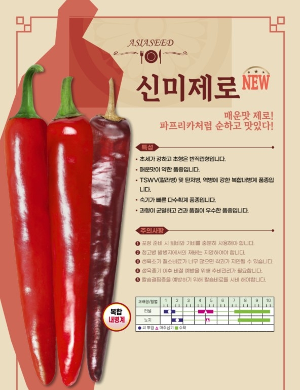 고추 신미제로 아시아종묘㈜ 02-443-4303 매운맛 제로! 파프리카처럼 순하고 맛있다!
