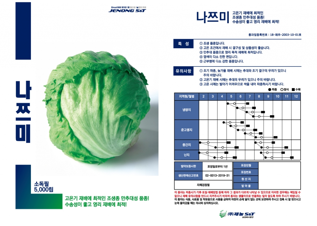 | 주요특성 | 신선도가 오래가서 싱싱한 포기용 상추! |