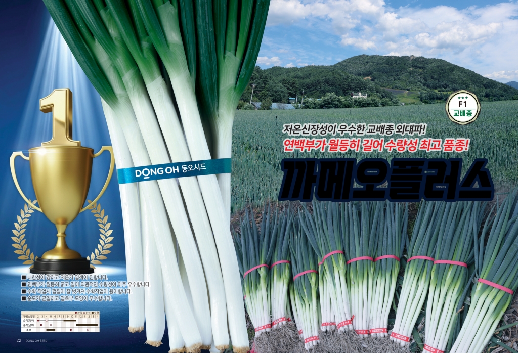 | 파 | 까메오플러스 | ㈜경농 | 031-8010-8011 | 연백부가 월등히 길고 상품성과 저온신장성이 우수한 교배종 외대파 |