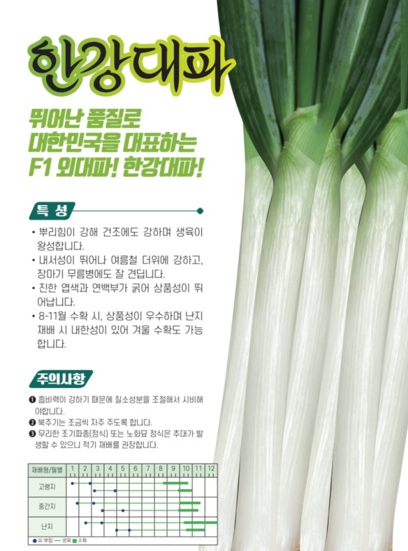 | 주요특성 | 추위와 더위에 강한 F1 교배종 대파 |