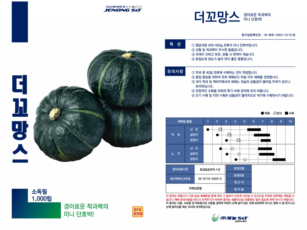 | 호박 | 더꼬망스 | ㈜제농S&T | 010-8506-0809 | 경이로운 착과력의 미니단호박! |